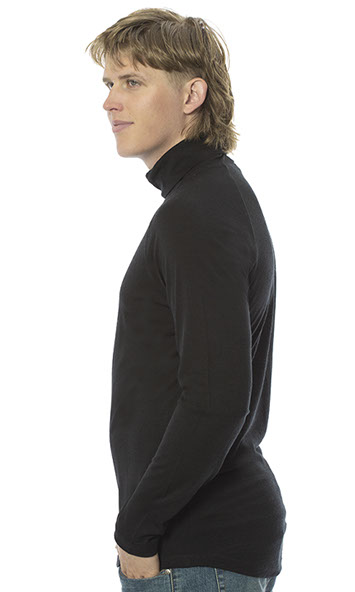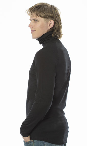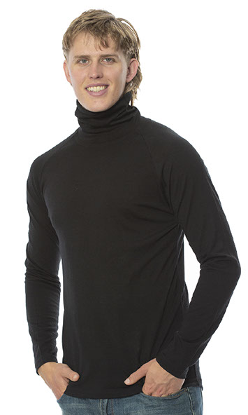 Skivvy roll neck, raglan long sleeve with a shaped tail to tuck in for extra warmth, perfect for layering under jumpers and coats.